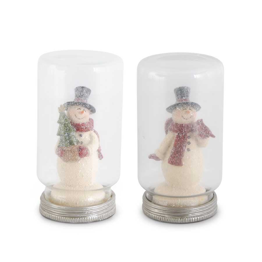 Glittered Resin Vintage Snowmen In Glass Jar